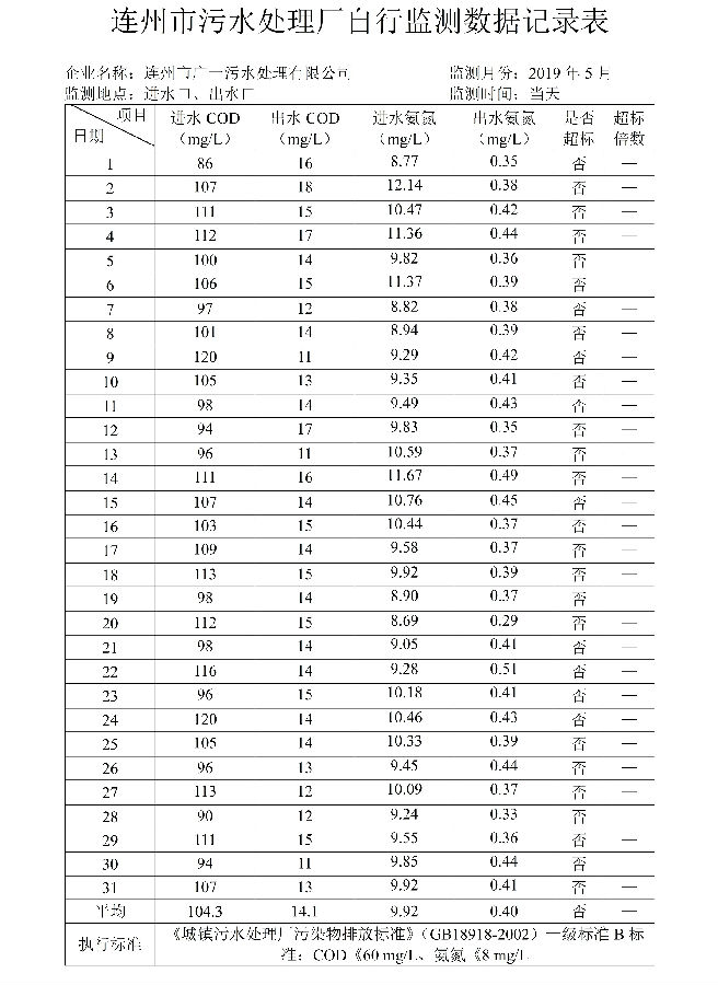 2019年5月自行監(jiān)測(cè)數(shù)據(jù)--連州市廣一污水處理有限公司
